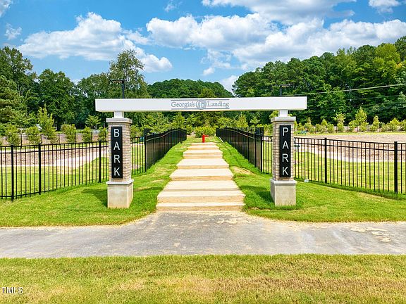 Welcome to Georgia's Landing, Raleigh's hottest new address! With resort-style amenities, including a future lazy river pool, cabana, dog park, pocket parks, playgrounds, and miles of scenic walking trails, this community offers the ultimate lifestyle in a TRIPLE PRIME LOCATION. Just 15 minutes from Downtown Raleigh, with easy access to shopping, dining, and top-rated schools, Georgia's Landing is where convenience meets charm. The home's eye-catching double-stacked porches will instantly draw you in. Step inside to discover a spacious, open-concept layout perfect for modern living. The chef's kitchen, featuring a massive center island, seamlessly connects to the great room, creating a perfect space for gathering with family and friends. For more formal occasions, a separate dining room off the entry foyer offers an ideal setting for special celebrations. The oversized rear covered porch invites you to unwind and enjoy the warm summer breeze while overlooking a cozy, low-maintenance backyard, complete with a detached TWO-CAR GARAGE. Upstairs, you'll find two generously sized secondary bedrooms, a shared bath, and the showstopping private owner's suite. This retreat includes a stunning second-story balcony, dual vanities, a luxurious garden tub, a separate shower, and a walk-in closet so spacious it feels like it has its own zip code.