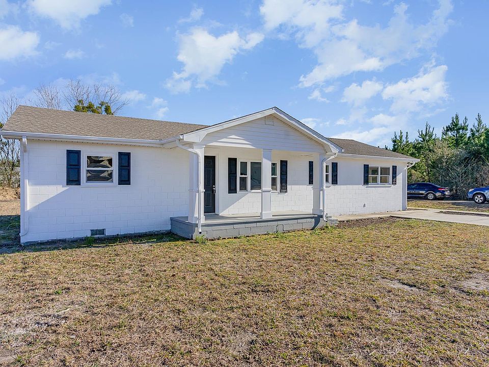 Completely renovated ranch style 2 bedroom, 1 bath home in Conway! This charming home boasts fresh paint inside and out. New roof and windows. Entering the home you will notice new flooring, new lighting, ceiling fans with a beautifully redone kitchen, new cabinets, counter tops, stainless steel appliances and subway tile backsplash. Walking down the hallway enter to the full bathroom that lets in light with a new vanity, toilet and bathtub. And then on to the bedrooms, new carpeting and all new doors. There is a family room off to the right of the home with a side entry door. New hot water heater installed. As you exit out the back door through the laundry room, you step onto a patio that is great for grilling and entertaining guests. A small shed and two car carport included as well. Don't miss this opportunity to own this completely renovated home!
