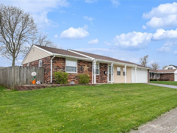 Wonderful 3 bedroom 1 ½ bath ranch with great curb appeal, covered front porch, 2 car garage and fenced yard! Laminate flooring throughout the home, an updated Kitchen with beautiful cabinets and newer refrigerator. Kitchen sliding door is new. Updated barn door dividing a separate utility room. Large garage with storage and workbench. This home is truly move in ready!