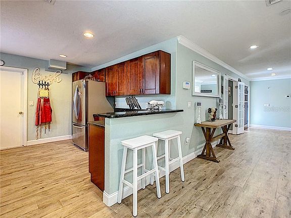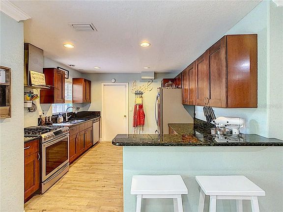 NEWLY remodeled home, no room left untouched. Stunning wood look tile floor throughout. GRANITE in kitchen and bathrooms. NEW gas range in kitchen. Oversized baseboards and crown molding in living space. Large bedrooms. Master bedroom has a beautiful CUSTOM closet and the 4th bedroom has been upgraded with french doors. Gas tankless water heater for money saving efficiency. Newer roof. Back room is perfect for hobby room or playroom. THREE outdoor patios, great for grilling and entertaining. Neutral color palette makes this home easily move in ready. Less than 1/2 mile from Publix and Walmart. Less than 5 miles from Park Ave and Great restaurants. Enjoy shopping, parks, biking trails and even dog parks nearby.