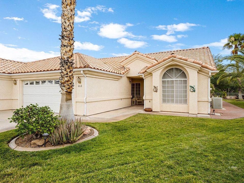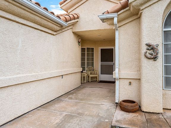 A rare find in beautiful Mesquite! This home is located on the north side of town tucked away in the serene cul de sac neighborhood of Las Palmas. You'll find a little slice of paradise in its spacious backyard with dazzling mountain views, sumptuous palm trees, and lush landscaping. Vaulted ceilings throughout, a large primary bedroom with walk-in closet, and built-in garage storage and work area This home is move-in ready and comes complete with all appliances, partial home furnishings, and surround sound with all the space to relax and/or entertain. Located a short distance from historical St. George, UT and fabulous Las Vegas, NV!