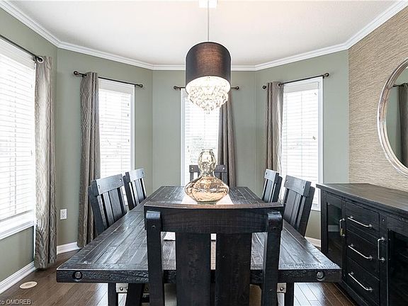 This Mattamy Westgate townhouse is in the desirable Harrison neighbourhood. Within walking distance to shopping, hospital, parks, and schools, just minutes away from the Velodrome, Escarpment trails and outdoor attractions. BONUS: Large covered porch & interior garage access for everyday ease! The stylish open concept space is filled with lots of natural light from the abundance of windows in this corner unit directly facing a park. Entertain your family and friends in the distinct dining room and open concept family room with hardwood floors. Warm-toned kitchen with large island (seating for 5) and granite counters makes cooking dinner a breeze. Up on the 2nd level are 3 large bedrooms, master with big walk-in closet and 4pc ensuite. Everyone's favourite - convenient 2nd floor laundry and loft/den area for even more living space. That's not all! Fully finished basement with large rec room and wet bar - perfect for family game night! You must check out this gem before it's gone!