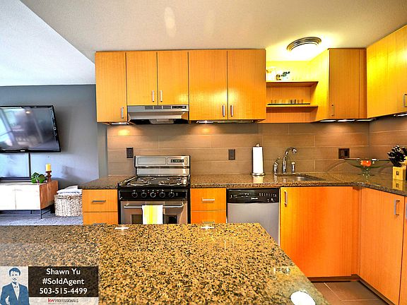 Lakefront Living in the Heart of Lake Oswego. Fabulous views! Great room layout with wall of windows. Lake views from kitchen and living areas. Stylishly renovated, granite counters, tile floors, custom blinds. Relax on your own private deck while watching the sunset. Ideal location near shopping, restaurants, movies, brew pub, George Rogers Park, dog park, golf course, theater, farmers market, you name it! Summer fun on Lake Oswego!