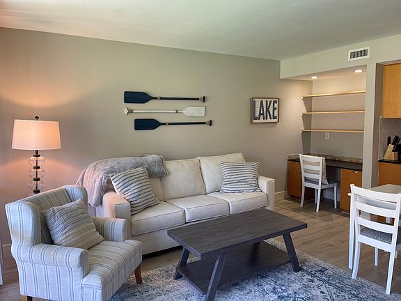 Charming, updated lake condo with great views of the lake right in the heart of downtown Lake Oswego. Lake Oswego has a village like feel with wonderful local restaurants and shops to explore. This unit was completely updated in 2021 with new flooring and carpet and new furnishings. Full kitchen, BBQ on the deck, in unit washer and dryer and full updated bathroom with large shower. Owner pays for all utilities and unit is furnished.