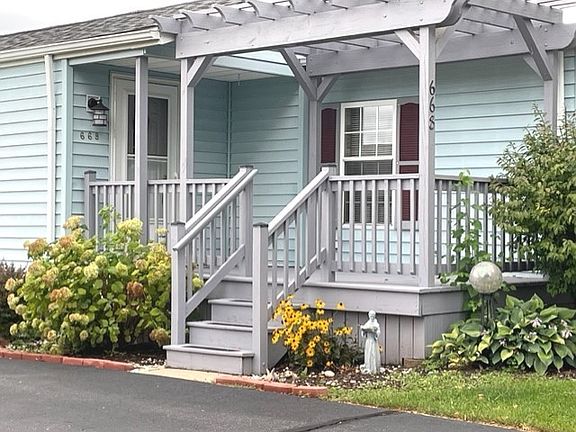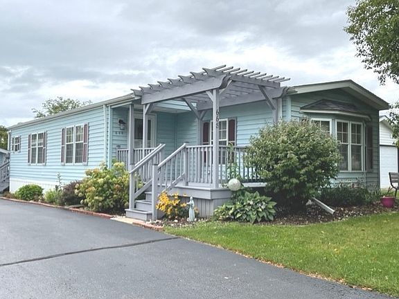 The adult community of Indian Trails provides comfortable retirement living without breaking the bank! This 2 bedroom, 1 1/2 bath home has open floor plan with the spacious living room having cathedral ceiling, ceiling fan and built in bookcases and hutch. Dining area/kitchen has wolmanized wood flooring for easy care. Lots of cabinets and movable island that you can utilize to your personal like and needs. Split bedroom arrangement provides privacy...master bedroom has double closets plus a built in TV cabinet and dresser. 2nd bedroom has attractive bay window that brightens the room. Laundry room opens to nice rear deck with steps to the back yard. And lets not forget the awesome pergola front porch ! 1 1/2 car garage and attractive landscaping also adds to the appeal. BIG plus is the year old, $9,960 roof with tranferable warranty! Monthly fee includes sewer,water,garbage and basic cable TV. Park rules include no residents under 25, no pets over 40 lbs, $25 credit report required on every occupant, park approval. Do not miss this opportunity to join the Indian Trails community! See it today!