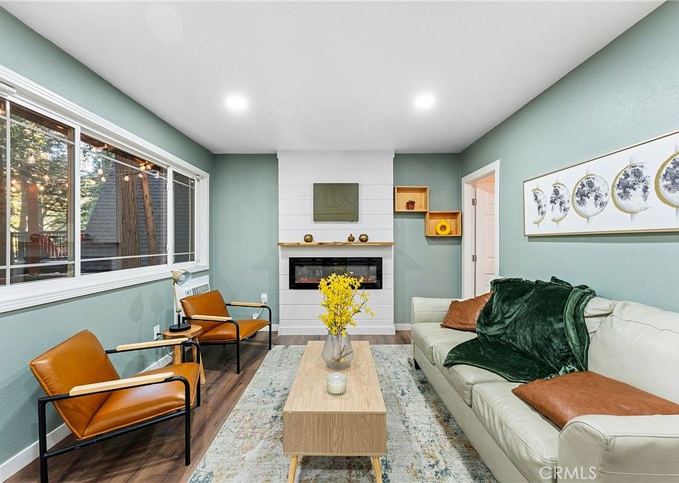 Located minutes from Lake Gregory, this remodeled Crestline home features a thoughtfully designed two bedroom, two bath layout with numerous recent upgrades. The interior offers new flooring, recessed lighting, updated fixtures, and fresh interior and exterior paint. The kitchen and bathrooms have been fully renovated with modern finishes including New Deck