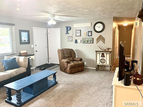 Nestled into the cute city street of 3W in Rigby, is this adorable one story home, on a fully fenced 1/3+ of an acre. Gorgeous mature trees and lots of grass area, you'll love this mature yard. Large RV pad with gate access, garden shed and fire pit. Walking inside, you will find a spacious family room area with a cozy gas fireplace. The kitchen is well laid out with white cabinets, newer gray laminate floors, & nice brand new carpet in the hallway and family room. The dining room is next to the kitchen has convenient access to the extended 1 car garage. Down the hall, laundry, 3 bedrooms and a full bath. Great crawl space! 7 ft ceilings with plenty of room to stand! Lots of room for storage. You will love the proximity to town. Come live in the heart of Rigby and walk to the parks and shopping!