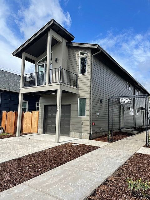 Be the first owner of this beautiful, high quality townhome in downtown Canby. 2 bedroom, 2 bathroom. Custom cabinets with quartz counter tops. LVP flooring and carpet. Heating and cooling. Small, self managed 4 townhome project with no HOA fees.