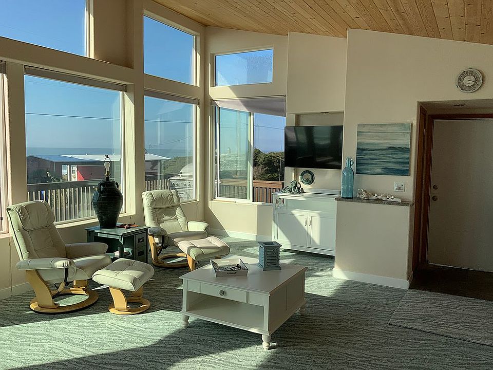 Almost oceanfront in Yachats Village! WHITE WATER OCEAN VIEWS and BEACH ACCESS only steps away. Newly updated home with open concept floor plan. Light and bright with sky-high ceilings and walls of windows! Walk to all the shops and restaurants in Yachats. Large deck for enjoying the sea breezes and the Lah De Dah Parade! 3 bedrooms upstairs don't have closets. Separate studio apartment with laundry on lower level. Could be guest quarters, a rental...so many possibilities!