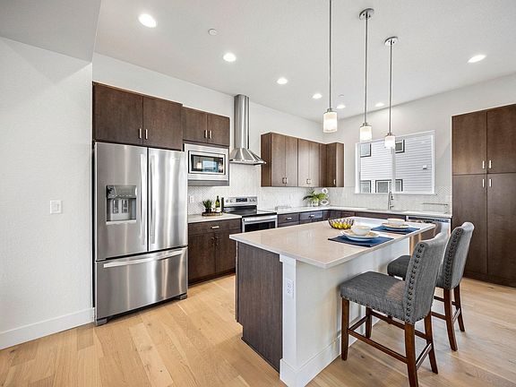 Never lived in end unit 3 bedroom Townhome. Step into the entry foyer with ample storage space and easy access to the two-car attached garage. The open concept interior features tall ceilings, vast windows, and hardwood floors. Main floor offers spacious light-filled kitchen, ample dining space, and open living room with fireplace. Brand-new stainless-steel appliances, quartz countertops, and modern-style cabinetry. Enjoy easy indoor-outdoor entertainment with access between the living room and the second story covered deck, overlooking the quiet community park. On the upper level, the master suite features a walk-in closet, dual sinks, walk-in shower, and floor-to-ceiling tile. Two secondary bedrooms, full bathroom, and laundry room are on the same floor. Steps away from the Sports Stable and future Downtown Superior commercial development. Easy access to US-36, 7 miles from Boulder, 16 miles from Denver, and 37 miles from Denver International Airport. No Smoking, tenant pays all utilities.