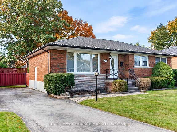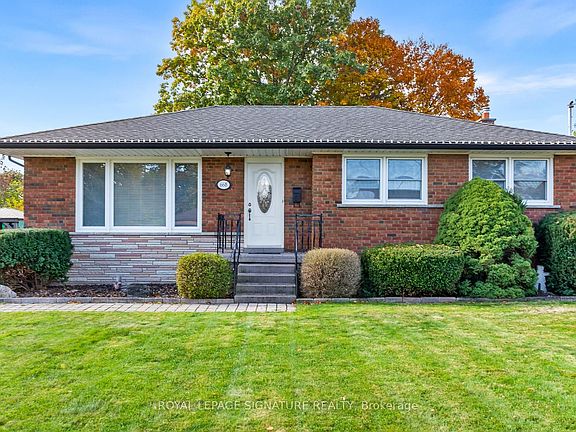 Charming, lovingly maintained all-brick bungalow in downtown Burlington, set on a private 60 x 130 lot. Featuring 3 bedrooms and 2 bathrooms, this home offers new main floor and partial basement flooring (2024) and hardwood throughout. The eat-in kitchen was fully renovated in 2022 with high-end finishes and stainless steel appliances. Major updates include windows, furnace/AC, roof, and foundation waterproofing.Enjoy a move-in ready home with a deep, private backyard perfect for entertaining. Conveniently located just steps to the waterfront, parks, shops, and the GO station. A rare property where most utility power lines are positioned at the very back of the lot, unlike many neighbouring homes where they run through the middle or front yard.