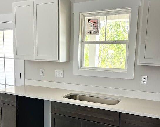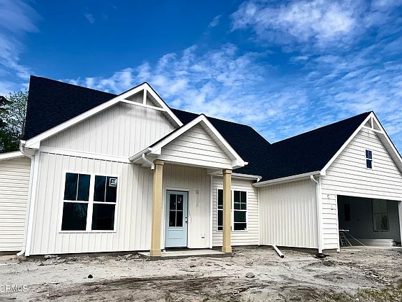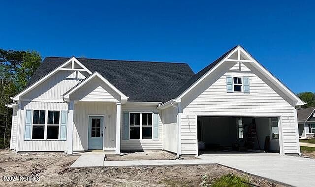 Welcome to Harrison Cove in Hampstead! This new construction house offers 4 bedrooms and 2 baths across 1700 sq/ft. Inside you will find an open concept layout, perfect for entertaining and a split bedroom design for privacy. The kitchen features white shaker upper cabinets and beachwood lower cabinets, quartz countertops, stainless steel appliances, including a range hood and built-in microwave in the island. A convenient walk-in pantry and a pull-out trash complete the space. The primary bedroom has a private en-suite with a double vanity and spacious walk-in closet. The remaining bedrooms are generously sized with ample closet space and share the second bathroom. Enjoy the convenience of LVP throughout the house, plus the added features like a drop zone, separate laundry room, and pull-down attic space. The exterior will be completed with a sodded yard and a Ring doorbell for added security.