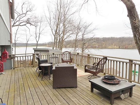 Stunning contemporary lake home with absolutely gorgeous views of the lake from all living areas! Decorated with artistic style and flair...so inviting inside and out. Main level features large open kitchen, dining and living room area with vaulted ceilings and beautiful brick see through FP to den. Spacious master bedroom with walk in closet. 2 spacious bedrooms on lower level with family room, dining, 3 season room, 2 baths and laundry room. Great set up for guests! Tiered decks and easy steps to lake with 112 ft of lake frontage, steel seawall, boathouse, storage, and large swim deck.