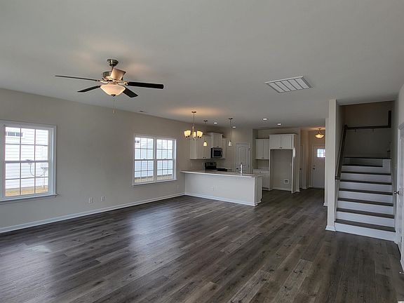Golf cart to the beach from this beautiful custom floor plan, surrounded by the pond on two sides, by the local builder voted Best of the Grand Strand and Best of the Beach for the second consecutive year! In the Ocean Palms community (Voted Best Neighborhood!), and almost complete and ready for you. A welcoming front porch, a large rear porch and tons of windows to frame the gorgeous pond views are the defining features of his home, which was designed specifically for this lot. This terrific 3 bedroom, 2 full bath, 1 half bath, open floor plan home has wood-look waterproof LVP flooring throughout - no carpet. Stainless appliances, staggered-height white Shaker-style cabinetry, quartz counters, a cast iron farm sink, a corner pantry and a convenient breakfast bar combine to give the kitchen the wow factor you're looking for, and the abundant recessed and pendant lighting, three sets of double windows and a sliding door flood the home with light. The slider leads to a covered porch with a large separate patio, to take advantage of the beautiful pond view. The spacious owner's retreat features quartz counters with undermount double sinks and an oversized walk-in shower, with plenty of storage in the cabinetry and the huge walk-in closet. A half bath for your guests is tucked under the stairs and two additional bedrooms and a full bath are upstairs. All of the homes in Ocean Palms come standard with the luxury and efficiency of natural gas (tankless water heater, gas heat and a five-burner gas range). The fully-sodded yard has an irrigation system, front and back. The garage is completely trimmed and painted, with a wifi-enabled garage door opener and floored attic space accessed by drop-down stairs. Ocean Palms is conveniently located near shopping, restaurants, schools and world class medical offices and hospitals, and a short golf cart ride to Surfside Beach's gorgeous beach and the Atlantic Ocean. Other floor plans and inventory homes may be available. Community pool and cabana now open!