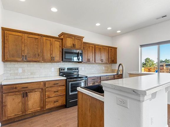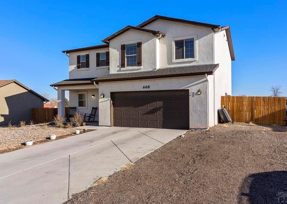 Welcome Home to Pueblo West! This recently built (2017) two story stucco home with 3 beds, 3 baths and an attached 2 car garage is ready for new owners. You'll fall in love with the open and inviting living space on the main level. The kitchen and dining room open to the living room so you can be a part of all the action. There are plenty of windows for great naturallight, and the freshly painted white walls make the space feel airy and bright. As you venture upstairs, you'll find a spacious loft area, 3 bedrooms, 2 full baths, and the laundry room. The oversized primary bedroom features an adjoining master bath with double vanity, walk in glass shower, and closet. The other 2 bedrooms are hardwired for ceiling fans, and the easy access, second level laundry room comes complete with counter space and shelving. The home features central air conditioning, and an energy efficientfurnace from 2017. The home is situated on a larger lot with a fully fenced yard and gate. The backyard extends a cement and paver patio, with a playground and grassy area. The lot can also accommodate RV storage, sheds, and more.