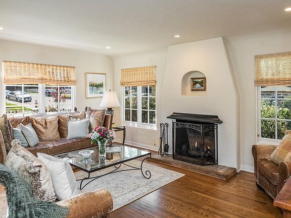 Enter through an arbored gate and you will find a secret garden with an array of delightful surprises around every corner. Meticuloulsy maintained, the home features the highest quality finishes, fixtures and appliances. The kitchen was remodeled a few years ago by a local designer and is beautifully appointed with Calacutta Borghini Marble countertops and backsplash, Viking Range, Cabinet Front GE Monogram Refrigerator, Bosch dishwasher, Shaw Farm sink and Rohl Country Faucet. There are hardwood floors throughout and stone in the 2 bathrooms. The living room is warm and inviting with a gas fireplace insert. The Master Suite is complete with cozy sitting area and bay windows looking over the backyard. Step outside onto the expansive deck and take in the beautiful gardens and stone patios. There are even twinkling lights in the trees. Down a garden path you will find a cheerful space for your office or studio. The home is completely surrounded by a charming fence.