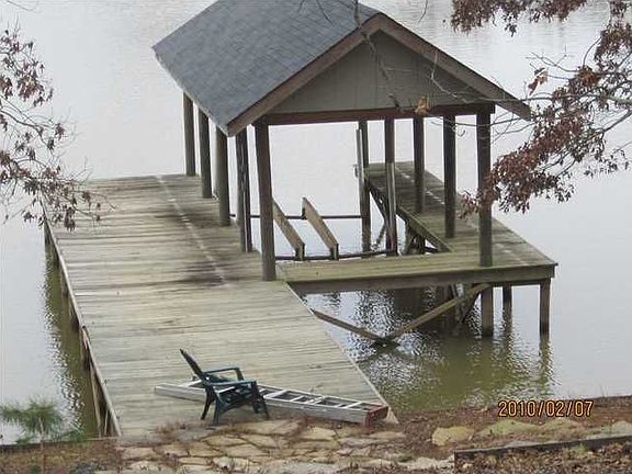 274 Feet of year round water with over 3400 square feet of living space (per tax records).Seawall and covered dock with a lift already in place. Gently sloping lot with stone steps to the water. Large windows on the lake side for great views. Master is on the main level with its own sliding glass door to access the deck along with the spare room. Bathroom and two bedrooms upstairs have had some updating. Open beam ceiling in the living room and dining room with hardwood floors and cedar ceilings centered with a great fireplace.Kitchen has some updates also with all stainless appliances including a warming drawer and refrigerator. Downstairs is another 1/2 kitchen with a huge open living space with a seperate fireplace and another bathroom and bedroom for your guests or another family. Private wooded lot with concrete circular drive and small attached workshop. Decking covers the entire back along with a seperate screened in deck off the kitchen. EVERY room has a view of the lake.