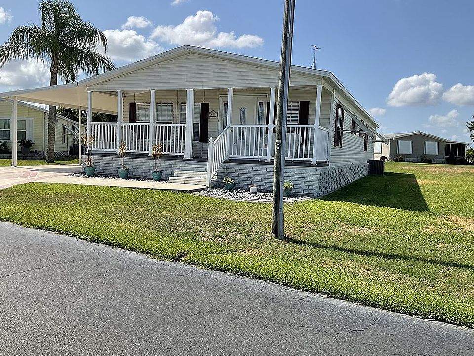 A 2005 Fleetwood in Whispering Pines over 55 community. Home has a Den, separate laundry room, a screen room with shed and an additional shed, plus an open front porch that is 6 x 26. There is a community pool, exercise room, clubhouse, shuffleboard area, pickleball court, and a dog park area.