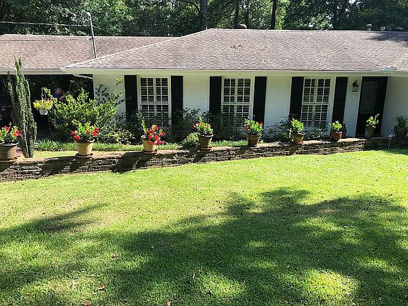 This home is situated on a huge wooded lot of almost two acres. The house is white painted brick with black shutters with a spacious two car car port. The neighborhood is quiet with other beautiful homes on either side.