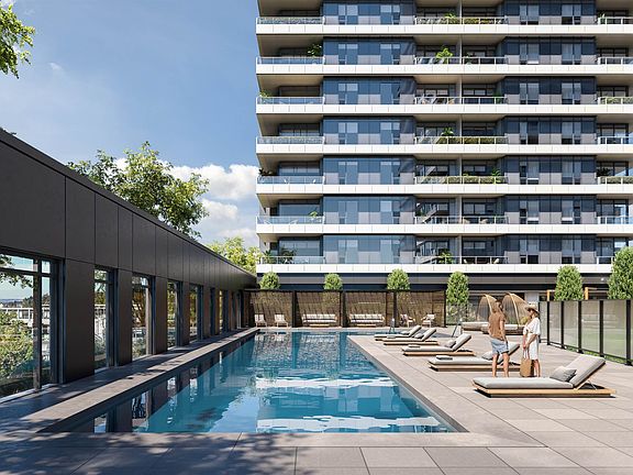 Band by Townline is a 45-storey tower in vibrant West Coquitlam, boasting resort-inspired amenities and bold architecture. This versatile 2-bed+lock-off offers separate entry, dual glazed windows, two balconies, and laminate flooring. The 2-bed portion includes a well-equipped kitchen with integrated appliances, quartz countertops, and large format porcelain backsplash. The studio suite features a spacious closet and full bathroom. Enjoy over 27,000 sq ft of amenities including an outdoor pool, gym, yoga studio, dog run, garden plots, music room, spa, concierge, guest suites, and a curated penthouse amenity level with games lounge, chef's kitchen, and outdoor areas with fire tables and BBQs, all showcasing stunning views.