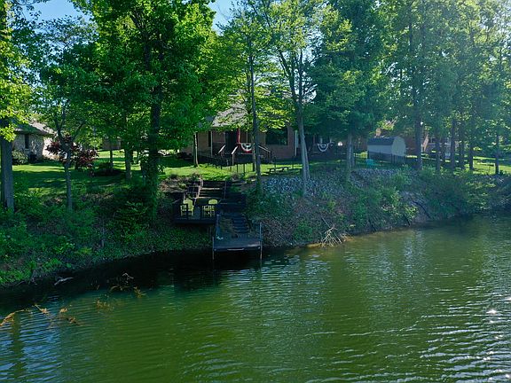 4 Bedroom custom built home surrounded by mature trees situation on .9 AC on a PRIVATE 14 ACRE LAKE in Mooresville! This home offers an enormous open kitchen with double sided fireplace separating it from the great room where you will find cathedral ceilings and oversized windows providing a stunning view of the lake. Main level master suite with WIC, double vanity & jacuzzi tub. 3 additional bedrooms & full bath upstairs all with LVP flooring. The finished basement has endless storage, theater room with all included equipment, game area with included pool table, wet bar and full bath! You will love the large lot with ample hangout/ entertainment space, private dock, storge building and fenced yard with a large deck off of the kitchen!