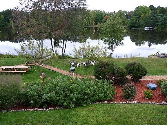BASS LAKE SHORES Affordable CONDO is ready for your year round pleasure. Upper level unit features open concept living, cathedral ceiling, gas log fireplace and lakeside sun deck/with direct steps to lake front, Mesmerizing views! Bring your paddle board or fishing boat and catch panfish and big bass. Two large bedrooms - Master Bedroom/Bath and a second Bedroom and full bath. Modern Kitchen has all the appliances and loads of cabinets! Big Pantry and full size laundry set up off kitchen. Extra storage in the basement! A one car detached garage just steps from the condo entrance plus an assigned parking place. The entire property is nicely maintained with good size yard lakeside, kayak racks, additional storage in basement, nice neighbors.. manicured landscaping and paved driveway. Located between Eagle River and Rhinelander in Sugar Camp keeps you close to all amenities.