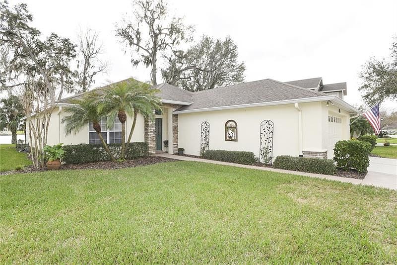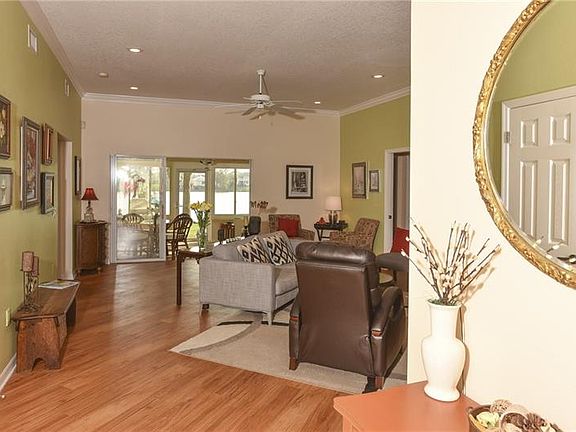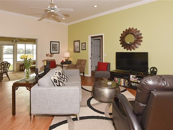 Beautiful lakefront home with private dock in the highly desirable community of Christina Hammock. Exceptionally well maintained, this 3-bedroom 2 bath split plan (with office) flows seamlessly with tile and wood-look floors covering the entire residence. The large kitchen and baths have been treated to a complete renaissance with new cabinets, granite tops, sinks, plumbing and lighting fixtures and new range with double oven and microwave. The kitchen offers eating opportunities in the large nook with plantation shutters, breakfast bar and center island. The spacious owner's suite overlooking the lake features a tray ceiling, plantation shutters, a walk-in closet and leads to glamour bath with large walk-in shower, separate tub, large double vanity and private commode. Secondary bedrooms are spacious and one has a "Murphy Bed" for increased flexibility. The living room/den setting invites you to visit comfortably with special guests or just get away for some quiet time and it has office possibilities if needed. In the park-like setting overlooking the lake, the dock will be partnered with a newly installed seawall which is under contract and waiting contractor commencement. The Florida Room overlooks this vista and the double pane windows offer panoramic views. The laundry room is spacious with cabinets and the garage has lots of cabinets and laundry sink. A/C is new in 2013, gutters as well and property is irrigated from the lake. Roof is original but certified by licensed roofer. Better call today!!