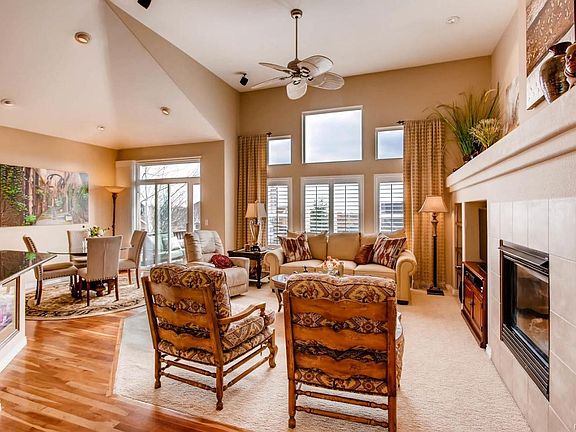 This elegant home offers the ideal floorplan. Main floor living with master bedroom, study and laundry all on the main level. Formal dining room and 2nd bedroom complete the main floor. Gorgeous finishes throughout. Extensive cherry wood floors. The kitchen features slab granite counters, warm espresso cabinets and large island. Bright and open floor plan with soaring two story vaulted ceilings. Finished walk out basement provides additional living space with 2 bedrooms, full bath, and family room. Terrific cul-de-sac location backing to neighborhood walking path.