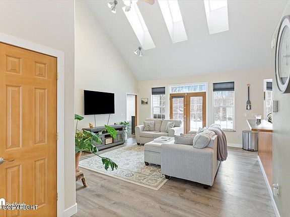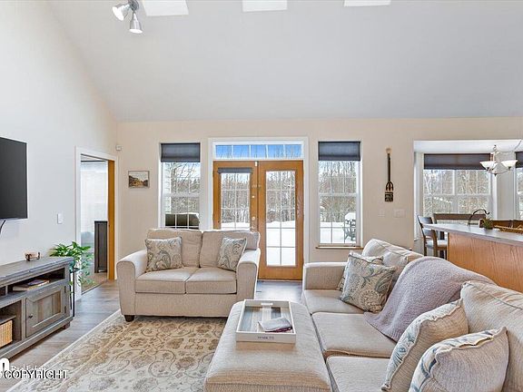 You don't want to miss this one! 4 bedrooms, 2.5 baths on 2.6 acres! The open concept, tall ceilings and fireplace instantly makes you feel at home. Great views from your back deck while enjoying the fire pit, huge, landscaped back yard, and garden. The 700+sqft garage has its own half bath so you never have to leave! Lots of Alaskan toy parking, shed, room for a shop.Updates include, stainless steel appliances, new LVP flooring throughout, new carpet in bedrooms, in floor heat, new paint, updated master bath, new trim and much more!
