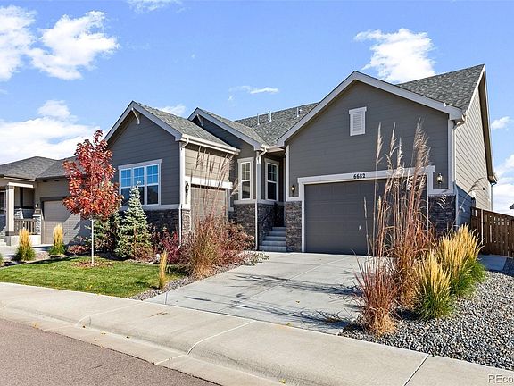 Located in Castle Rock’s wonderful Cobblestone Ranch neighborhood, this is better than new (and priced less!) This beautiful newer ranch home built in 2019, boasts 4 Bedroom & 3 Bath with a 3-car garage and is ready for you to move in! This west-facing home with an open floor plan has an abundance of sunlight and tons of space. Get prepared to entertain in this stylish home with its open concept plan that features tall ceilings, 8ft doors, a gourmet kitchen with 42” upper cabinetry, stainless steel appliances, solid granite countertops, center island, walk-in pantry, a spacious dining area, and a large family room with a fireplace. Take the party outdoors with a fully fenced yard, a covered back porch, and space for activities. Retreat to the spacious primary suite, complete with an attached spa-like bathroom. Be sure to check out the added tech nook off the kitchen, with built-ins, a custom desk, and beautiful flooring throughout this home! The enormous finished basement creates a wonderful extra living space with an additional guest bedroom, full bath, huge rec room, bonus flex space, and additional unfinished space perfect for storage and/or potential future living space. This home is located within the sought-after Douglas County School District. This home has full access to all community amenities, including a pool, playgrounds, tennis courts, 1,294 acres Hidden Mesa open space with mesa, steep rock cliffs, shady gulches, open grassland, and lush riparian habitat in the Cherry Creek basin with walking trails, and more. Don’t miss out! THE SELLER IS OPEN TO PROVIDING A CREDIT TO THE BUYER, SO THE BUYER CAN BUY DOWN THEIR INTEREST RATE; PLEASE CALL SELLER AGENT FOR OPTIONS.