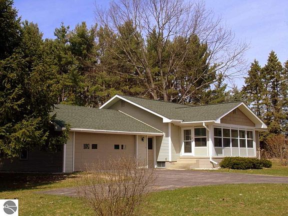 Bellaire: A quick walk to the public access/launch site to Clam Lake and a 5 minute boat ride into Torch Lake! Excellent location in a country setting, this 2 bedroom, 1 bath Cape Cod Ranch home is immaculate, well cared for and ready to go. Wood floors in living room and bedrooms, full basement and attached 2 car garage. Level yard allows plenty of space for home additions or generous gardens or outdoor games. Outside of home is easy care vinyl and the enclosed front porch could be enjoyed for a good portion of the year. Garden/Storage shed included. Great starter home or perhaps a cottage getaway with lovely countryside views and lake access just a minute away. This is an estate sale.