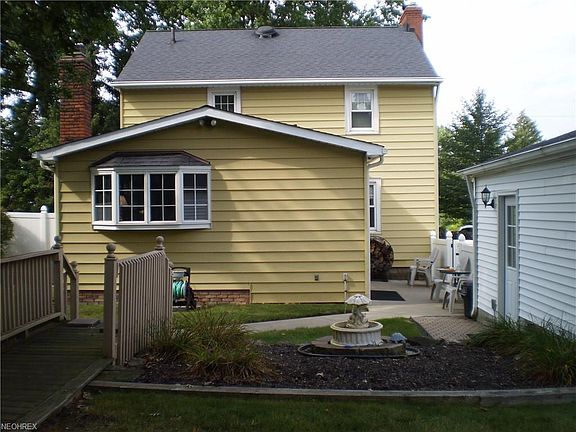 Huge eat-in country kitchen with WBFP and Bay window over looking beautiful Deep Lot. Formal D.R., Living Room with WBFP and much natural light. Completely fenced beautiful lot with side patio, rear deck and storage shed. Newer electrical box, replacement windows and glass block windows in basement. First floor half bath, full attic storage and built in cabinet storage on second floor. , newer concrete drive, 2002 Two Car garage. Toilet and shower in basement. Hardwood Floors under carpet. Well maintained home with Pride of ownership is evident in this second owner Mayfield Village Colonial. New Community Center, Beautiful City Pool, Outdoor Grove Events, Minutes to I-271 make this great place to call home. Step in and feel the warmth and pleasure of this home located in award winning Mayfield City Schools.