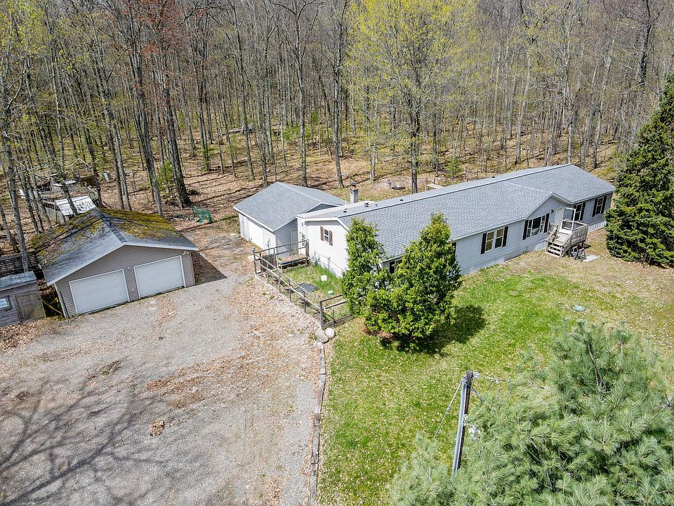 Fully updated and refreshed country home! on 3.5 beautifully wooded acres. New fixtures, drywall, flooring, living room sub-flooring, appliances, lighting. Roof is 3 years old. You will love this spacious home with it's new finishes and huge rooms. Three bedrooms, two baths with main floor living, main floor laundry and a roomy primary suite. This country property has two garages (one set up as a shop with a pellet stove) and some land options also! Located close to Rhinelander, this home has wonderful options for chickens, projects, gardening, working from home or just peaceful living while you enjoy the back deck or trails. Spectrum internet.