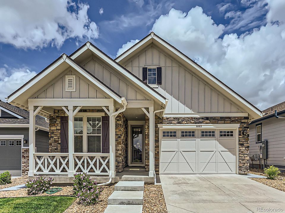 Stunning ranch-style home located in the highly desirable and gated community at Pinery West. Built in 2015 the neighborhood has a clean country club feel with golf cart access to Pinery Golf Club! Front yard maintained and irrigated by HOA for easy living! Exquisite home with classic covered front porch and a warm and inviting front entryway. Open floorplan with gourmet kitchen featuring 42” cabinets, granite countertops, stainless appliances, large island and pantry and plenty of space to entertain! Spacious main floor study perfect for working from home. Main floor master suite with beautiful 5 piece bath and large walk in closet. Guest bedroom with a separate full bathroom. Meticulously maintained home inside and out!!! Upgrades include new roof December 2020, new paint 2021, steel grate window well covers, custom shelving in garage and basement for storage, humidifier and soft water system, washer dryer included, xeriscaped backyard, fully fenced with large 10 x 25 covered composite deck and drop down shades for privacy from all sides. High quality build with 2 x 6 exterior construction and low utility bills. South Facing driveway great in the winter and a super clean, finished 2 car garage. HOA maintains front sprinkler, lawn and shrubs, snow removal on sidewalks, driveways and leader steps at 3" of snow, street plowing. The neighborhood features a dog park, picnic pavilions with bocce ball, and access to Cherry Creek Trails. Schedule your showing today!!