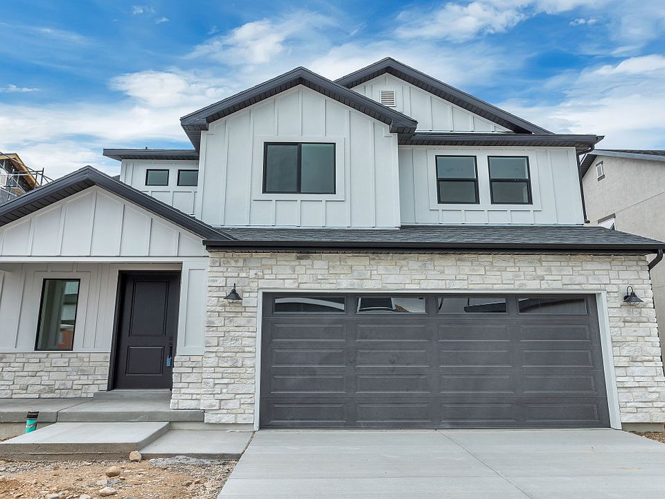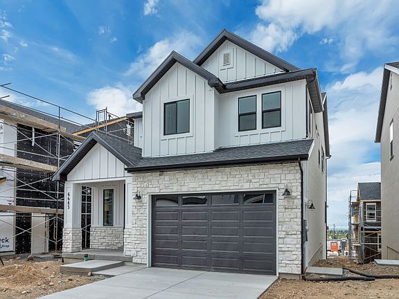 This amazing home is move in ready in our newest community in West Jordan. Some highlights of this home: A beautiful entryway offering a convenient built in bench with cubbies, tons of windows in the open to below great room providing natural light throughout the home and 9' ceilings for the rest of the main floor. Our designers have provided you with functional spaces, as well as bringing the beauty of the outdoor surroundings inside. Corban Latte cabinets with Calacatta Classique and Woven Wool quartz counter tops give you the elevated look you are looking for. The gourmet kitchen with stainless appliances, a 4' island and a wonderful built in desk area is a fantastic place to host your friends and family. The master bathroom comes with two sinks & separate shower and tub, providing rest and relaxation right at home. The basement is walkout with exterior door leading you to your backyard, providing tons of storage and future projects. This home is amazing and you do not want to miss it! Amenities: Bonus Room, Dramatic Ceilings (2-story, Vaulted), Mud Room, Oversized Primary Closet