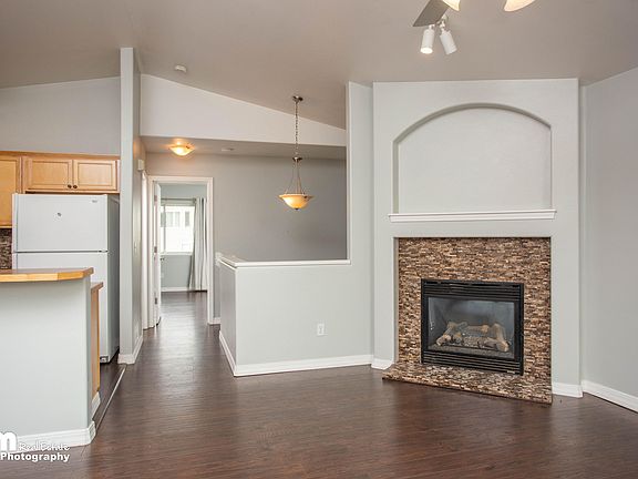 Move-In Ready! Wonderful views of Chugach Range. Vaulted Great Room & open kitchen, maple cabinets, breakfast bar. New LVP flooring throughout, Glass tiled back splash & fireplace. All appliances stay. Master suite w/ walk-in closet & bath w/ double vanity. Nice sized cedar-fenced backyard. Close to downtown, JBER & Tikahtnu Shopping Center. Home Warranty included for added peace of mind!