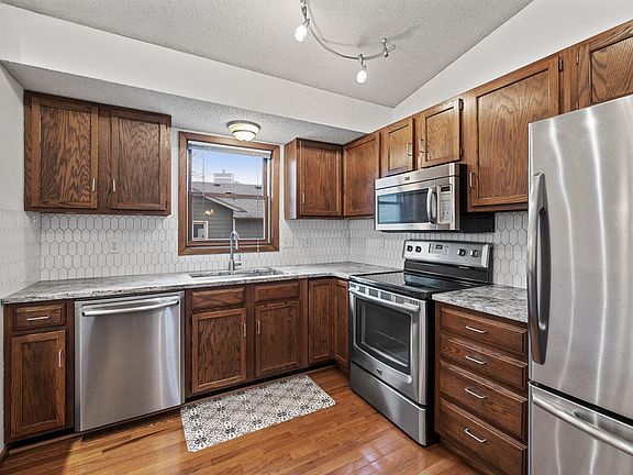 Charming 3-Bedroom Home in Prime Eden Prairie Location! Welcome to this beautifully maintained 3-bedroom, 2-bathroom home nestled in the heart of Eden Prairie! Boasting vaulted ceilings and gleaming hardwood floors, this inviting space offers both style and comfort. The updated kitchen features new countertops and stainless steel appliances, making it a dream for cooking and entertaining. Step outside onto the spacious deck, perfect for relaxing or hosting gatherings, while overlooking the large, fenced backyard—an ideal setting for pets, play, and outdoor enjoyment. The two-stall garage provides ample storage and convenience. Located just steps from the scenic Edenbrook Conservation Area, this home offers easy access to miles of trails, parks, and nature, all while being close to top-rated schools, shopping, and dining.