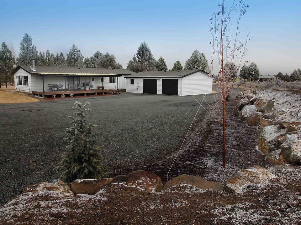Delightful 2.23 fenced acres in Sisters School District with clean & tidy, updated 1440 sqft home. Vaulted living room is cozy with woodstove for warmth, private large master suite, open kitchen, dining room & great room. Huge covered deck, beautiful landscaped yard with fire pit area for summer enjoyment. Awesome 1760 sqft shop w/220 power & 3 roll up doors, on slab, perfect for your toys and projects. BLM near by for riding & hiking. Three Sisters mountain views. Easy access to Sisters, Redmond or Bend from this location in the Golden Triangle!