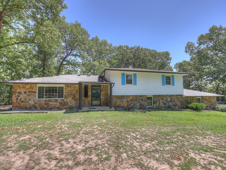 11.74 Acre Private Retreat, just south of Joplin! Classic tri-level solid ranch home is move in ready! Spacious 3 bdrm, 2.5 bath home features large rooms, wood burning fireplace, formal living room, large family room, relaxing concrete patio. New insulated windows throughout the home, updated flooring and insulated garage door. Mature trees, barn and tons of privacy. Need 2nd living quarters? Also includes a 2nd septic & electric hook up. The well is deep, flows abundantly and will service 2 homes if required. Solid Home! Park-Like Location!