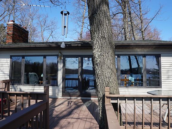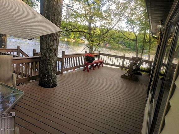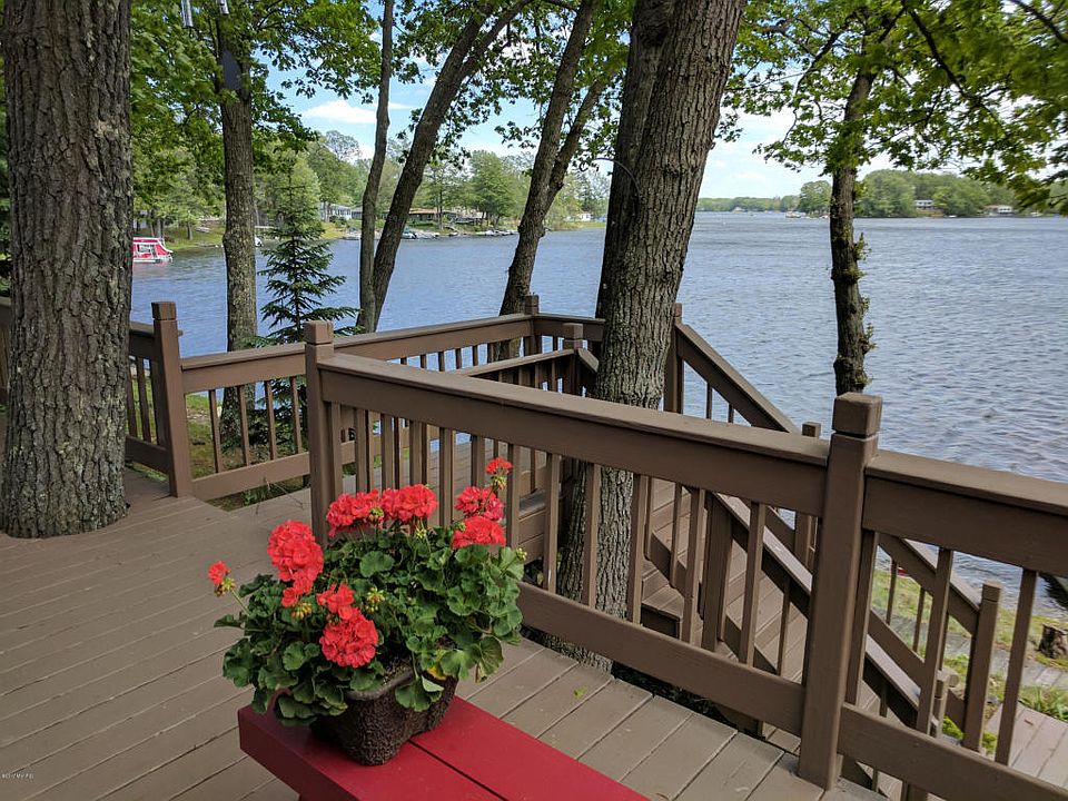 Piece Of Paradise Waterfront! 2 bedroom ranch open floor plan with large open windows providing unlimited views and an abundance of light. Kitchen provides all white cabinets and includes all appliances! Newer door allows a walkout to al large deck for warm summer night cook-outs great for entertaining family and friends. Great room includes fireplace. Only one hour commute from Grand Rapids to enjoy fishing, canoeing, boating, swimming and making family memories! Lower level offers a family room with walk-out. 2 1/2 stall garage. Want to get away from the hustle and bustle for city life - Welcome To The lake! Don't miss this affordable lifestyle; many deer, turkey, ducks all kinds of wildlife. All sports lake.
