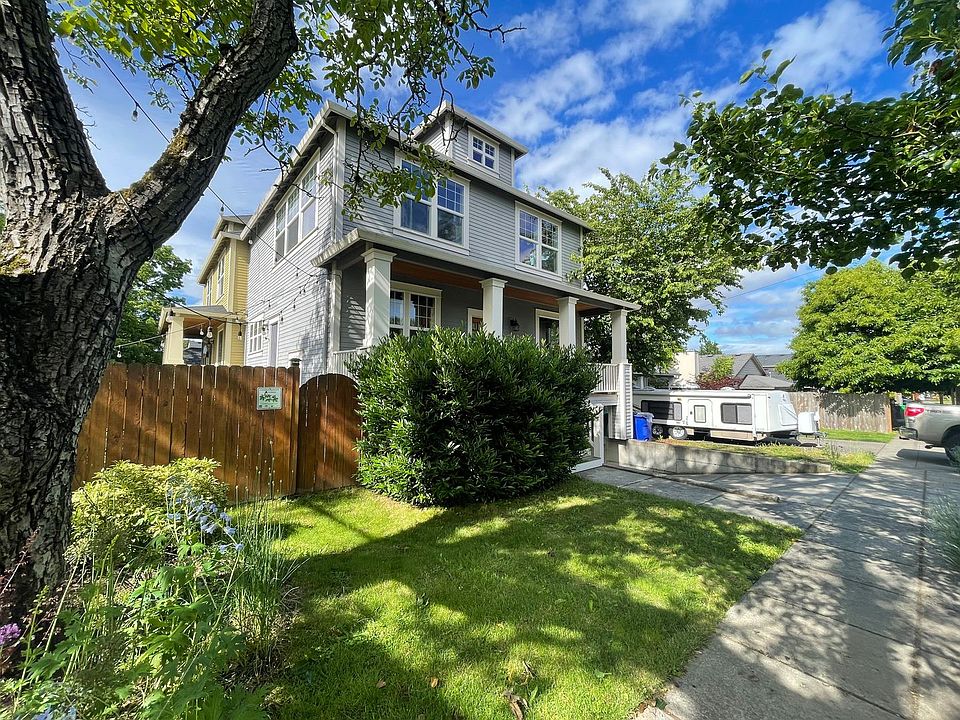 Located in St. John's, just a quick 10-minute bike ride to University of Portland, and just minutes to New Seasons, St John's Community Center and Cathedral Park, this modern craftsman hosts 3 bedrooms, 2 full baths, and approximately 1700 sq ft. This two story home includes bamboo hardwood floors, picture framed windows, high ceilings, gas fireplace, gas range, master suite, upper-level laundry closet with full sized laundry appliances provided, and fenced yard with mature garden beds. Enter this bright, welcoming and warm home into a lovely and open foyer with gleaming bamboo floors which run from the entry through the entire main living spaces. The living room hosts a centered gas fireplace, framed with windows on either side, and a built-in book case. Its' large front windows provide a view out to the home's front covered porch. Modern light fixtures and classic honeycombed ceilings merge to highlight both the living room and adjacent formal dining room Double pocket doors separate the formal dining room from the spacious kitchen, which is just down the way from the foyer as well. The kitchen decor is sleek with granite counter tops, beautiful mahogany cabinetry, deep stainless steel, double wash sink with a window view out to the backyard and full-size, stainless-steel appliances including: a gas range, dishwasher and double wide refrigerator/freezer. Its breakfast bar is ideal for simple meals or a grand buffet. The walk-in pantry can easily fit your groceries plus holiday platers! The second floor of the home is just as spacious and comfortable as the main level. The master bedroom is on the opposite side of the two other bedrooms. The master easily fit a king size bed, bedside tables, and dressers. Its' private bath hosts a deep soaking tub, dual sink vanity, water closet, tiled walk-in shower and walk-in closet. The two additional, top floor bedrooms, are also spacious with deep closets and plush, warm, carpeting. The second full bath is at the end of the upper hall and hosts a tub/shower combo, with tiled surround, and medicine cabinet. The home's laundry closet is also located on the top floor and includes full size appliances as well as cabinetry for your detergents. Add to your summer meals by adding fresh lettuce and tomatoes from the mature, backyard garden. Easy landscaping, Certified Backyard Habitat with grassy, fenced in backyard and brick patio. Additional amenities include: AC Forced gas heating Covered front porch Dog friendly **Property comes unfurnished ** Serviced by Bus Route 4 & 11 Schools: James John Elementary George Middle Roosevelt High University of Portland 10 minute bike ride Address: 6685 N Mears St., Portland, OR 97203 Bedrooms: 3 Bathrooms: 2 Aprx sq ft: 1700 Rent: $2900 Security Deposit: $2500 *Move In Special $300 VISA gift card with lease beginning August 1, 2024, or sooner* Utilities paid by tenant: Electricity, gas, water/sewer, cable, internet landline, and monthly garbage reimbursement Laundry: Full-size appliances provided on the top floor for your convenience Parking: Street parking only Pet: One dog is negotiable *Pet screening required: https reliance.petscreening.com Lease Option: 12-month lease Terms: No smoking! Providing proof of renter's insurance is required prior to taking possession of the property. Accessible Dwelling Unit: No For tenant rights, application and screening laws you can visit the following link. Leasing Information: Private tours available as well as Face Time (Monday - Friday) * Leasing Agent: Patricia May Terms, information and condition of property subject to change. Schools should be independently verified