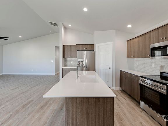 This brand new home located in vibrant Meridian, Idaho welcomes you with open arms. This home comes complete with a refrigerator, window blinds throughout, a washer and dryer, and full landscaping! The Preston 2126 is designed with easy living in mind. Enter inside to the dedicated entryway and make your way to the open living areas, where vaulted ceilings and an abundance of natural light await. The kitchen, living room, and dining room combine to make the perfect hosting space, ready for get-togethers or movie nights. The kitchen comes with stainless steel appliances and stylish solid surface countertops, adding both functionality and aesthetics to the kitchen. The primary suite is tucked towards the back of the home for peace and tranquility with its large en suite bath and walk-in closet. Two additional bedrooms share a well-appointed full bathroom. Photos are of the actual home!