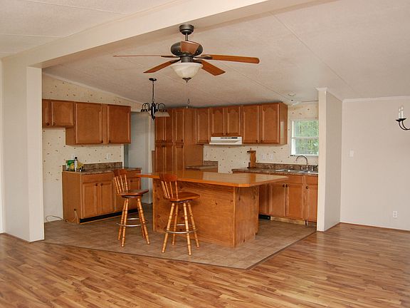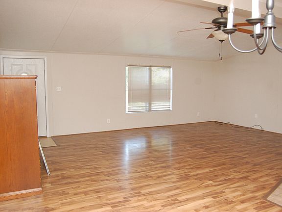 This home has an open floor plan with the master bedroom and bath separated away from the other 2 bedrooms and bath. It has high ceilings in the main living area, as well as the master bedroom. The master bedroom has a walk in closet. There is a separate laundry area with a linen closet. It is situated on a very large, private, rented lot. It can be rented or may be moved.