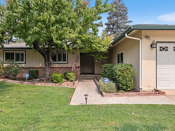Welcome to this adorable Hallmark Home, centrally located close to schools, shops, and Fresno's finest restaurants! When you drive in the neighborhood, you'll be pleased to see the lovely homes located in the cul-de-sac. This is single story home has been tastefully updated through most of the home. There is a spacious living room and separate family room, with a floor to ceiling cozy brick fireplace. The updated kitchen has nice granite countertops with matching backsplash, built-in electric stovetop, and white cabinets. There are 3 nice sized bedrooms, all with very nice wood laminate flooring. The enormous backyard features, tons of grass area, fruits trees, covered patio, and a shed for extra storage. Call and make your appointment today!