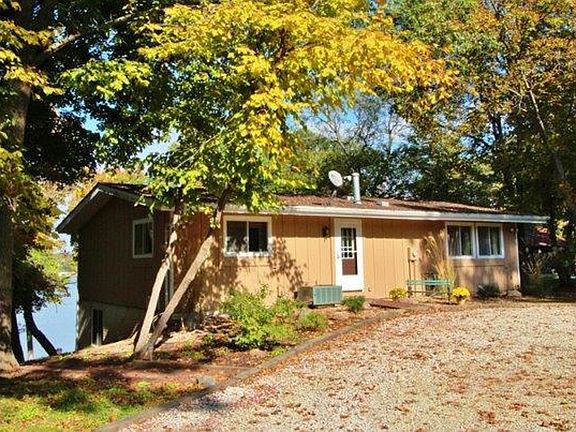 Welcome to lake living at it's finest! Great walk-out ranch with panoramic views on the lake. Tiled entry way opens up into large open living space with abundant windows to take advantage of the lake views. Galley style kitchen with breakfast bar will include all of the appliances. Dining area and living area all flow together with beams across the entire room. The main level also features two bedrooms and a full bathroom. The walk-out lower level is finished with a large family room, third bedroom, full bathroom and laundry area. Out back is a huge two-tiered deck with great lake views. Walk-out lower level features a brick patio and fire pit. This waterfront property features a cantilever dock. Furnishings included. 167ft of shoreline! Call for a showing today!!