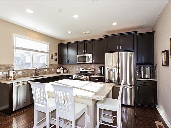 This is the home you've been waiting for! Perched up high on a quiet street with sweeping city and mountain views. Inside you'll love the custom kitchen with its slab granite counters, tile backsplash, high-end stainless steel appliances, espresso cabinets with pull-outs, walk-in pantry and large island with plenty of bar seating. All of this overlooks the spacious dining area and family room with cozy gas fireplace and surround sound. Upstairs, the romantic master suite will be a welcome retreat and you will revel in its spa-like bath with slab granite counters and wood grain tile. Other highlights include a large upstairs loft area, upstairs laundry room, main-floor flex space, full open basement for future expansion and a large stamped concrete patio with custom gas fire pit. Perfectly located near Southlands Mall with Cherry Creek schools, you can easily walk to Pine Ridge Elementary, the Wheatlands community pool and 3 parks. Completely turn-key and ready for you to move right in.