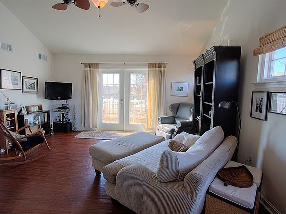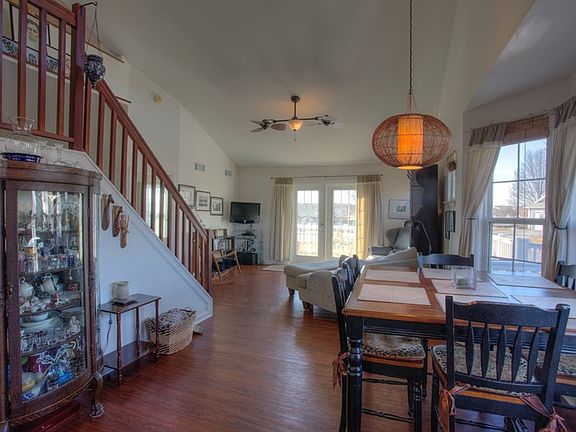 Desirable end unit w/ open floor plan. Vaulted ceilings in foyer, living room & 1st floor master bedroom which includes a private bath & walk-in closet. Wood-like flooring throughout kitchen, dining & living room areas. Open staircase to 2nd floor loft. Jack & Jill bath between 2nd floor bedrooms. Laundry hook-ups on both 2nd floor & LL. French doors lead to wrap-around deck. Finished basement opens onto covered patio. A JOY to see!