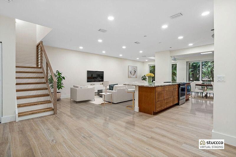 This 2 story unit is designed for the descriminating buyer! You will be DAZZLED by this renovated unit! Your jaw will drop when you see the huge open floor plan incl. the gorgeous kitchen! Stainless steel appliances, HUGE quartzite countertops. Warm & light colored cabinets & ''wood'' plank porcelain tile flr downstairs. New vanity in 1/2 bath. Contemporary metal railing w/ wood top. Light luxury vinyl floors on stairs 2nd & floor. NO CARPETING! Fabulous fully renovated master bathrm w seamless glass shower stall & new vanity. Huge master bedroom walk-in closet. Bedrooms 2 & 3 are great sizes & the 2nd bathroom has a new vanity. Hurricane proof doors and impact glass windows! This unit is next door to the community pool. Boca Pointe is NOT a mandatory equity community & is centrally located to beaches, hwys, shops & restaurants. There are several guest parking spaces to the left and right of the unit.