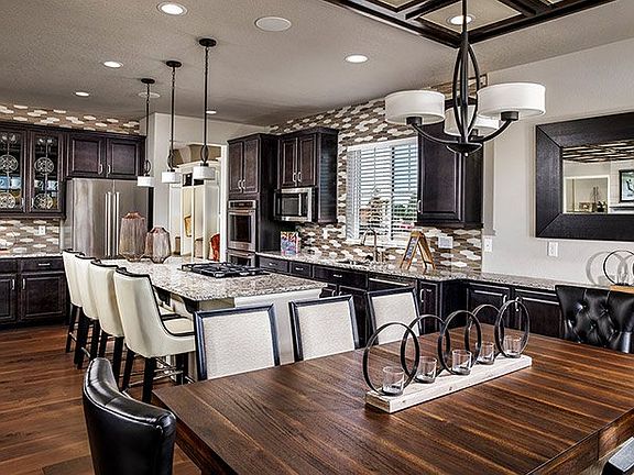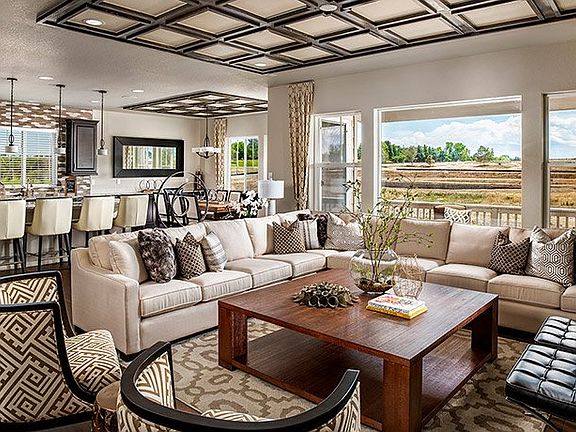 The Illusion offers over 2,100 square feet of living space and features dual master bedrooms with private baths and walk-in closets, two and one-half baths and a two-car garage. Additionally, this ranch home features a formal dining space or optional main floor study, gourmet kitchen with oversized kitchen island, walk-in pantry and spacious great room with tons of natural light.