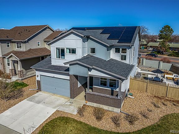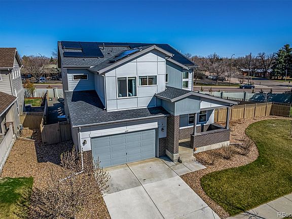 This exquisite South facing 5-bedroom + Office 4-bath home, located on almost ¼ acre lot at the back of a cul-de-sac, boasts almost 4000 total square feet, and a 3-car tandem garage. The great room is wired for surround sound and features soaring 2 story ceilings, abundant windows w/tons of natural light, hardwood floors, and a cozy fireplace. The delightful kitchen comes with quartz countertops, chic pendant lighting, ample cabinetry, crown molding, double ovens, tile backsplash, walk-in pantry, and a big center island with a breakfast bar. The main floor bedroom is complete with a walk-in closet and an adjacent bathroom. There is also a mudroom with custom-built cubbies. Upstairs is the spacious primary suite featuring a large custom shower, dual sinks, and a big walk-in closet. There is also a comfortable loft, convenient laundry room with wash sink, full bathroom with dual sinks, and 3 more bedrooms. The basement is wired for surround sound and offers a fantastic family room, which includes a fireplace and huge wet bar with all the appliances included. An additional bedroom with a walk-in closet and a full bathroom in the basement adds to the functionality and appeal. Outside, the spacious backyard is an outdoor sanctuary featuring a covered patio, an open patio perfect for outdoor dining, and a relaxing hot tub. Additionally, all the plants in the backyard have drip lines for no hassle watering. Other features include a dual HVAC system with humidifier, an owned solar system, a “Home HUB” with fiber, whole home Wi-Fi, and a universal router, and the property is zoned for an ADU. Some of the best features of this neighborhood are the exclusive access to the private Ward Lake Beach area, walking trails, and the Green Gables Reserve community clubhouse, pool, and spa. This property is conveniently located just 15 minutes from downtown Denver. ***CHECKOUT THE 3D VIRTUAL OPEN HOUSE AND VIDEO ATTACHED TO THIS LISTING***
